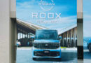 展示会ブースのアイキャッチとして、ルークス・リーフ・サクラ・セレナの4車種をデザインした大型幕を制作しました。